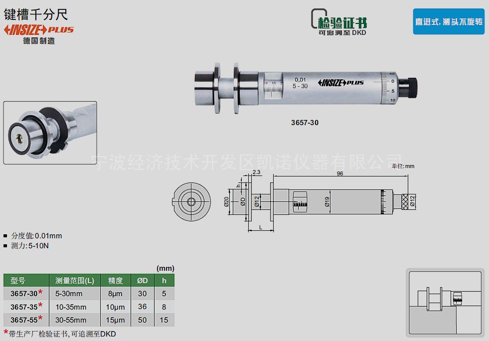 INSIZE英示正品原装键槽千分尺3657系列主要规格:规格
